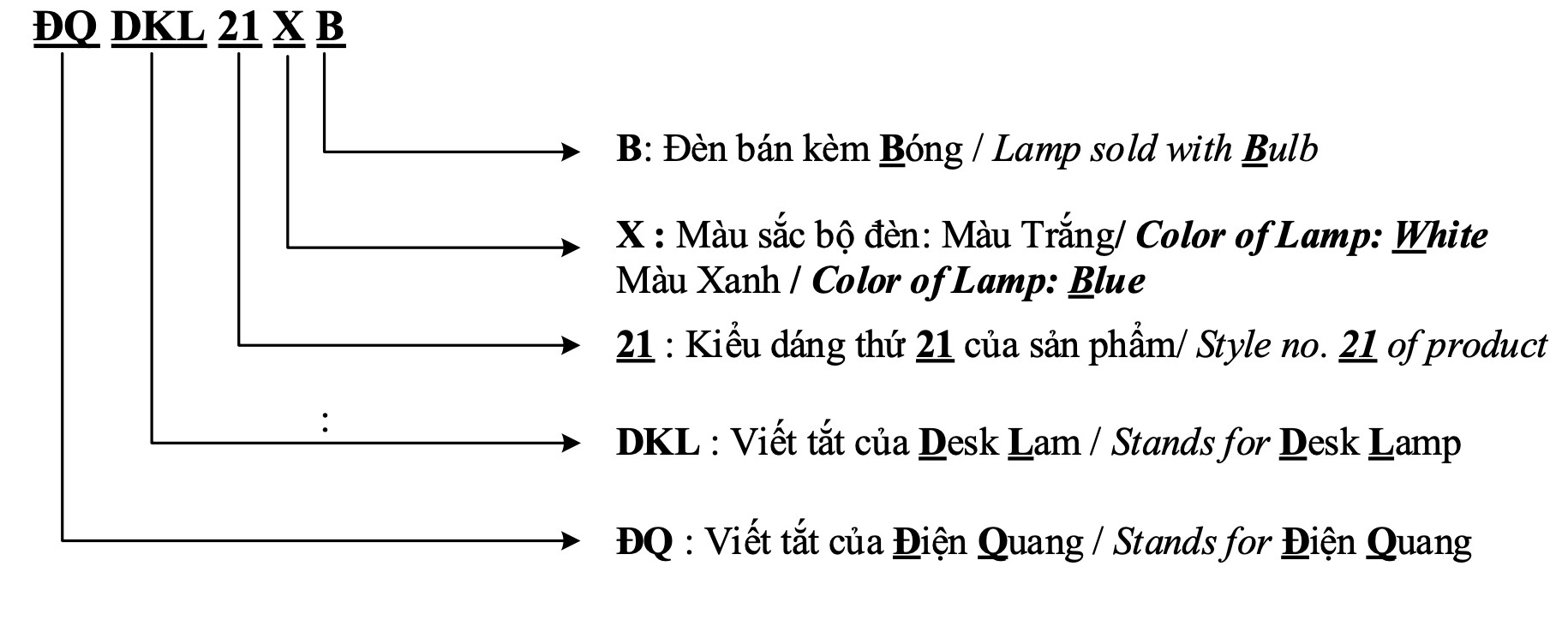 ❖ MODEL ĐÈN BÀN: ĐQ DKL 21 X B C